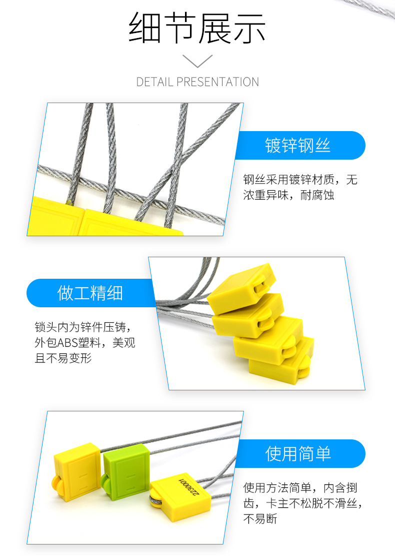 - 施封后,封线在不破坏锁体的情况下不易被拉出,抗拉力≥2000N。