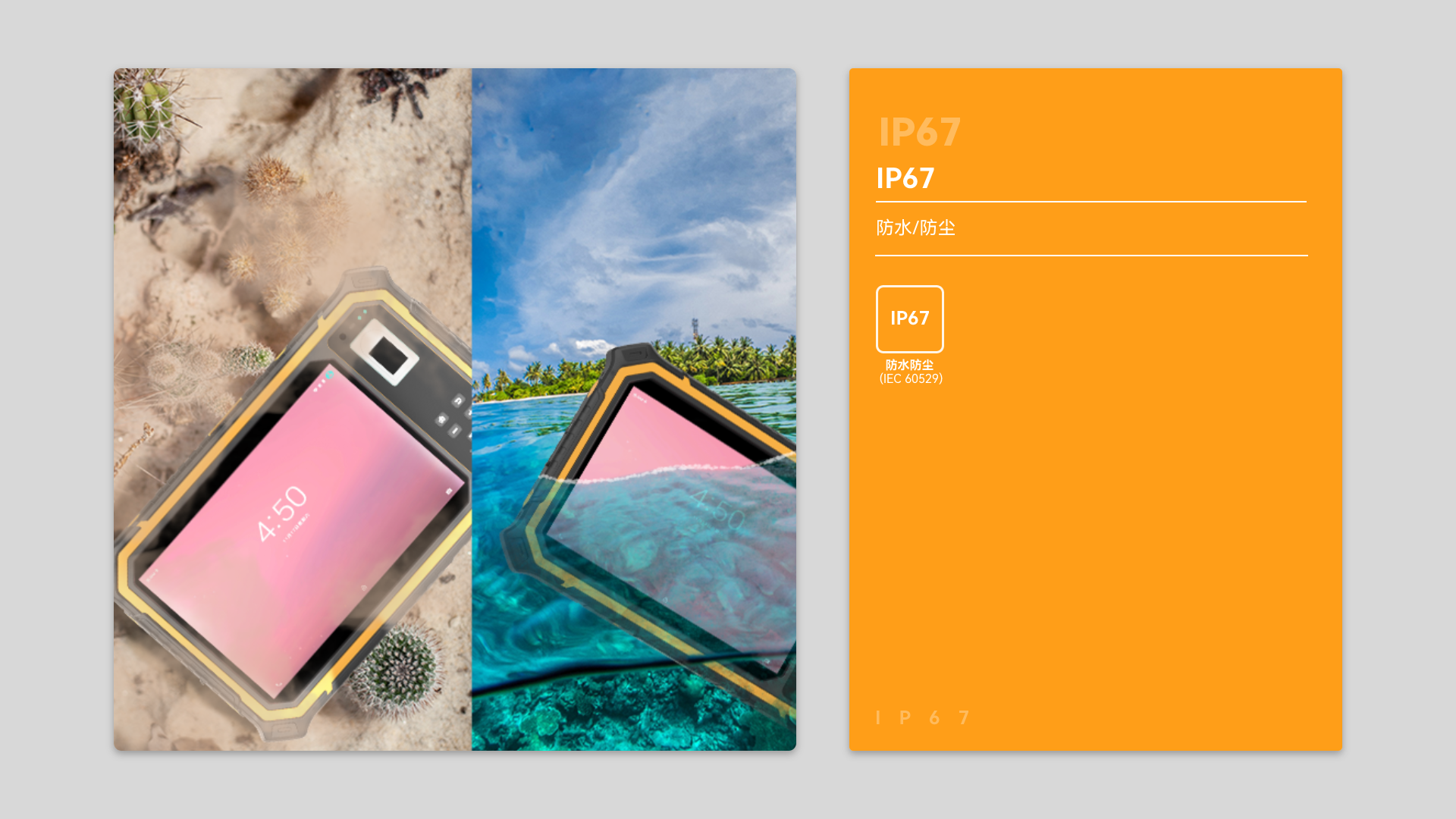 L8是一款拥有多功能数据采集的RFID三防平板电脑。支持RFID标签读写与NFC应用。L8外观设计实用,便携易带,运用8.0英寸G+G5点全钢化高强度电容触摸屏。产品采用领先的工业级防护,达到IP67密封标准。具有抗最高1.8m高度跌落的可靠性能,跌落防护符合MIL-STD-810G/Method516.6/ProcedureIV的军用保护等级。采用18900mAh高电压大容量锂电池,续航时间超长,为工作提供更有力的支持。速度最快的WIFI通信,保证速度传输的效率