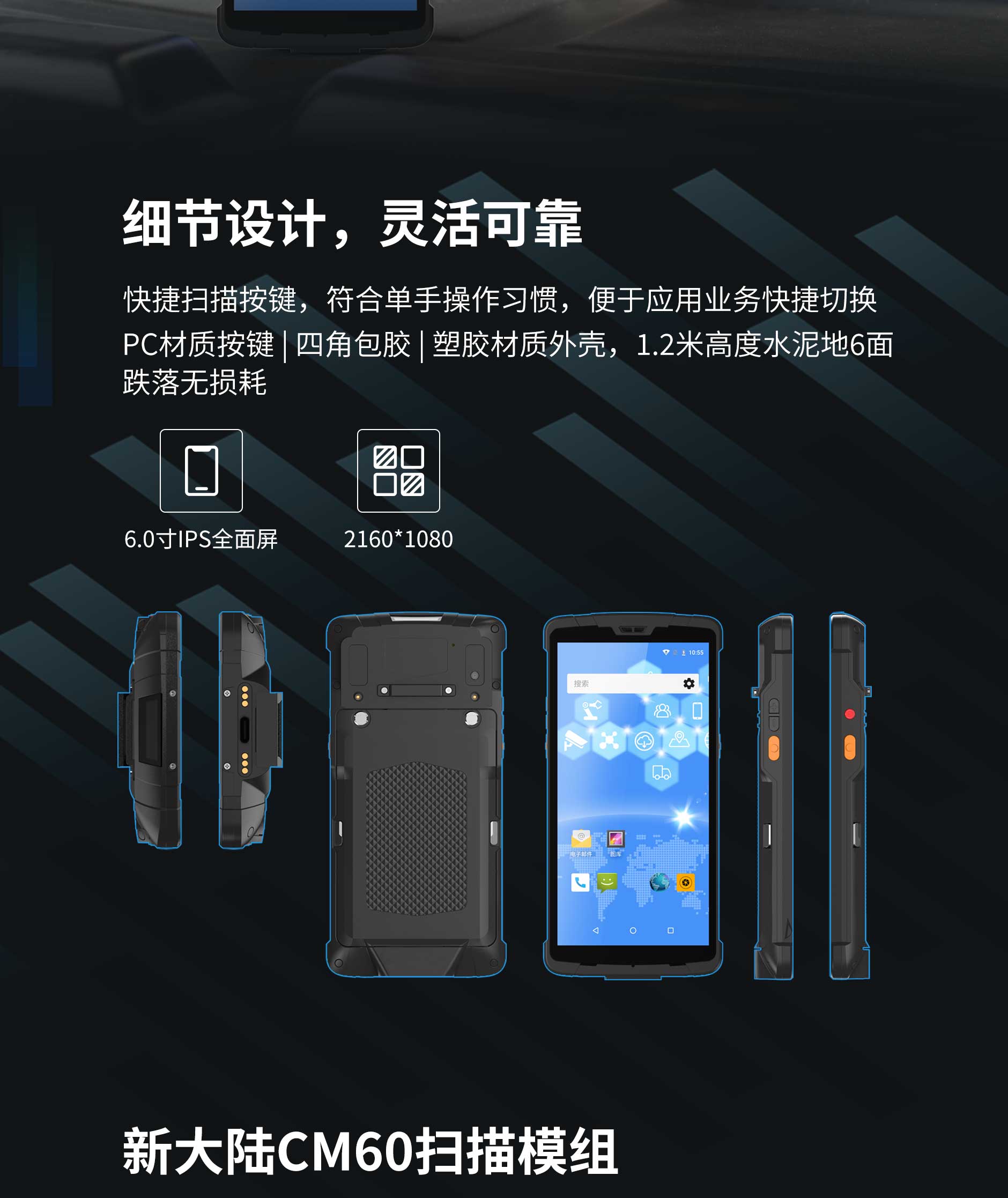 3. 6寸高清高亮屏幕(分辨率2160*1080)适合室外阳光下作业